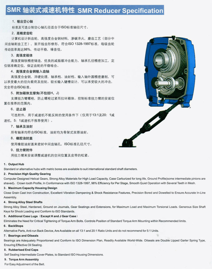 SMR公制軸裝式斜齒輪減速機特性