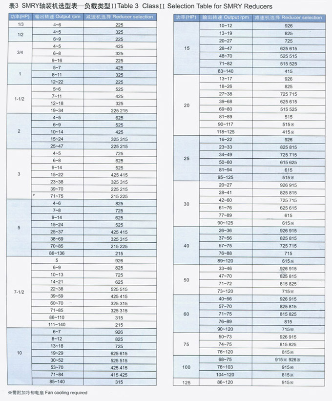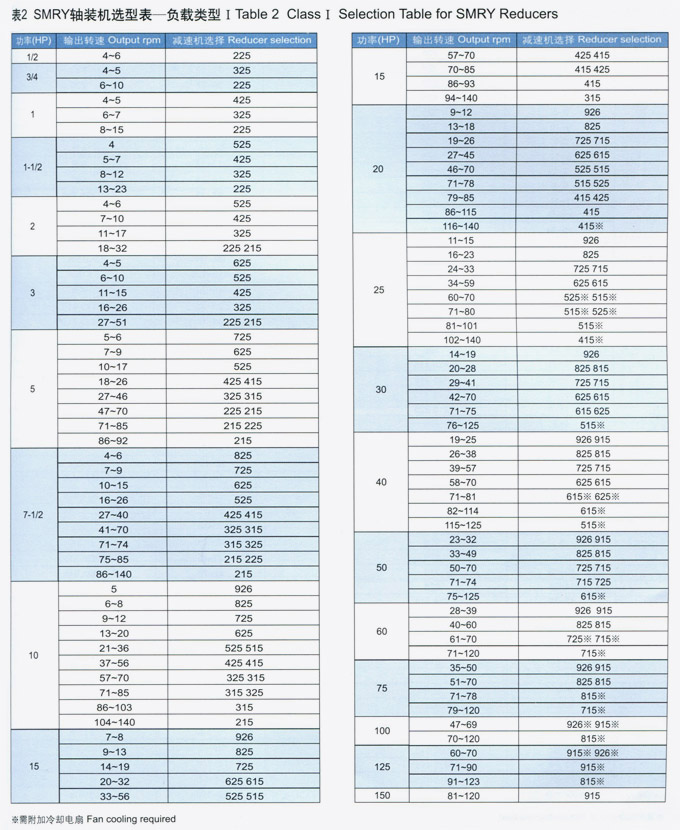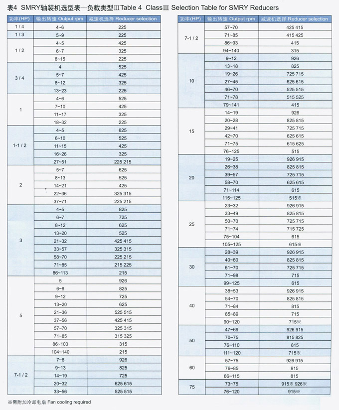 SMRY英制軸裝式斜齒輪減速機額定功率