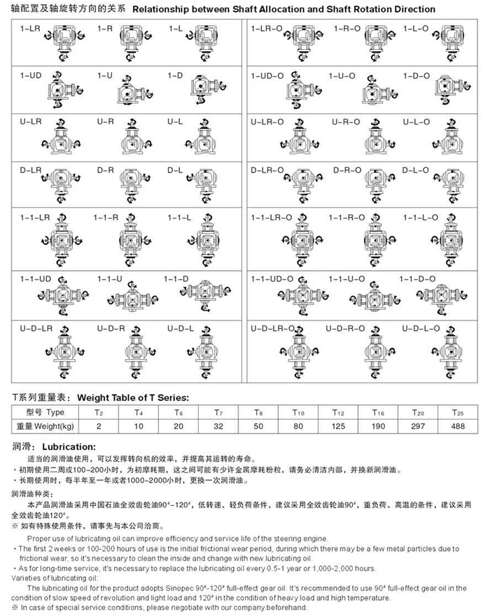 T系列螺旋齒輪轉向器軸配置及軸轉方向的關系