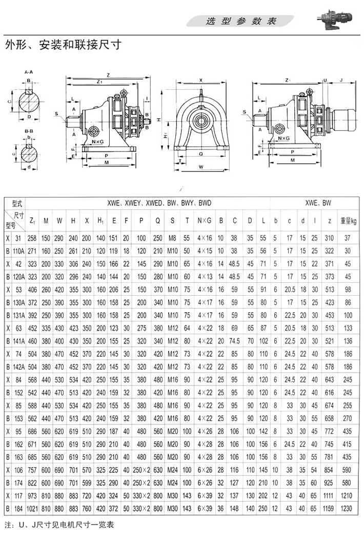 X/B擺線針輪減速機(jī)雙級(jí)臥式減速機(jī)外形安裝尺寸