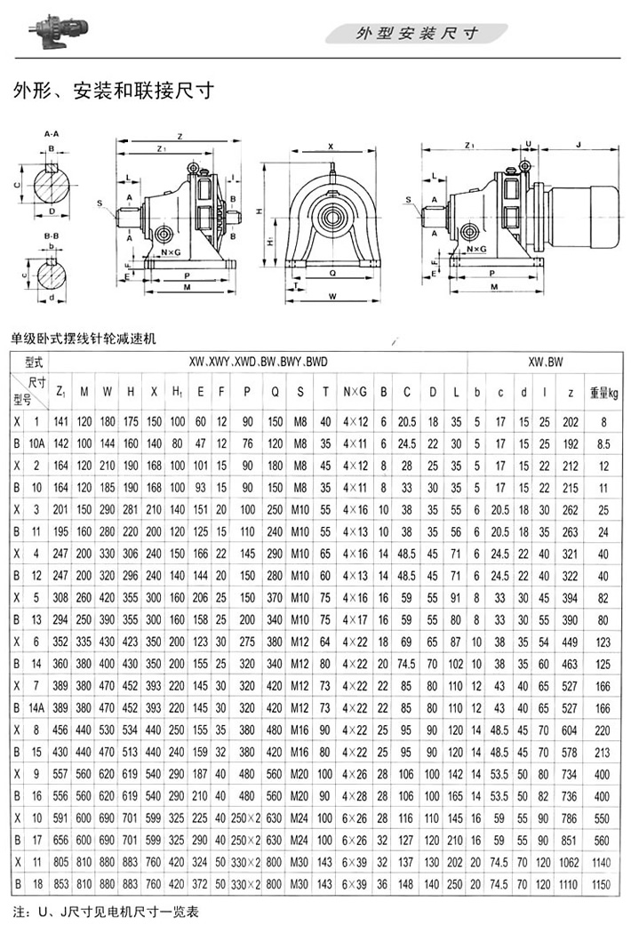X/B擺線針輪減速機(jī)單級(jí)臥式減速機(jī)外形安裝尺寸